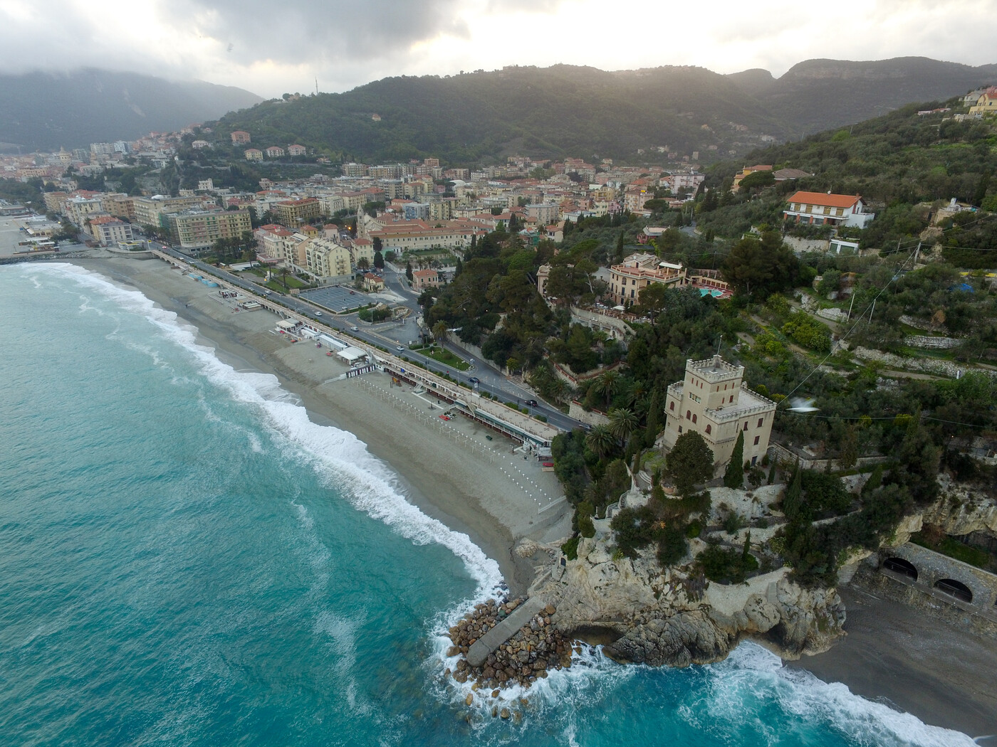 Auffällig ist vor allem die Lage unmittelbar unterhalb der Küstenstraße, nur wenig vom Ortskern und von weiteren Stränden in Finale Ligure entfernt. Die Küste eignet sich für Badegäste, die eine kompakte Stelle mit unkompliziertem Zugang suchen. Auch für SUP oder Kajak wird das Umfeld als passend beschrieben. Das Wasser fällt am Ufer eher sanft ab, und der Wechsel aus Sand und Fels prägt ein klares Küstenbild mit maritimem Charakter.