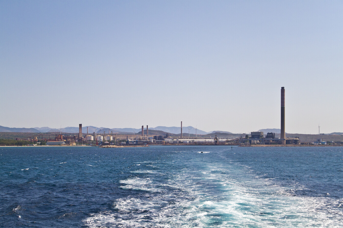 Kleiner Sandstrand direkt am Hafen von Portovesme