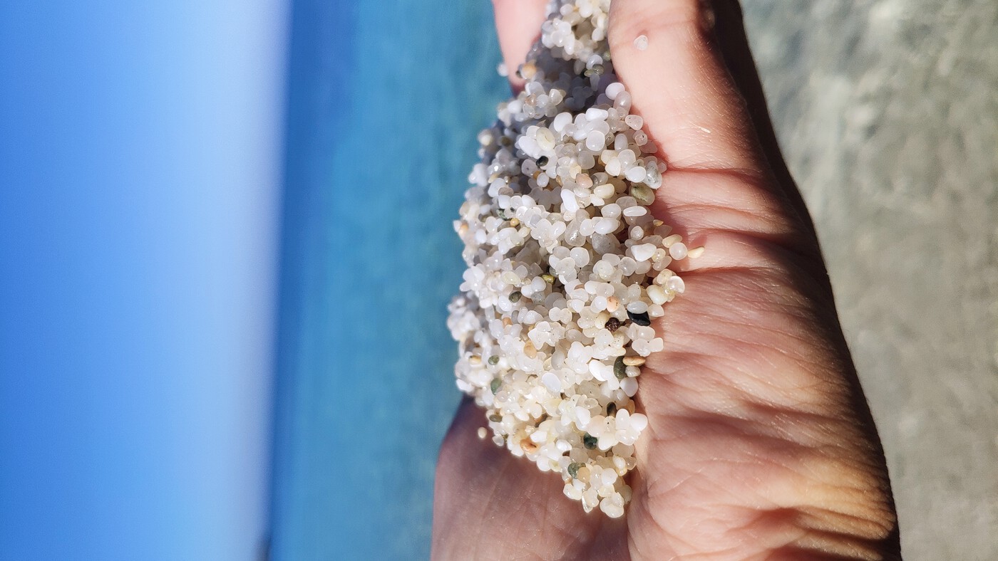 Quarzstrand mit Reiskorn-Körnern an der Sinis-Küste