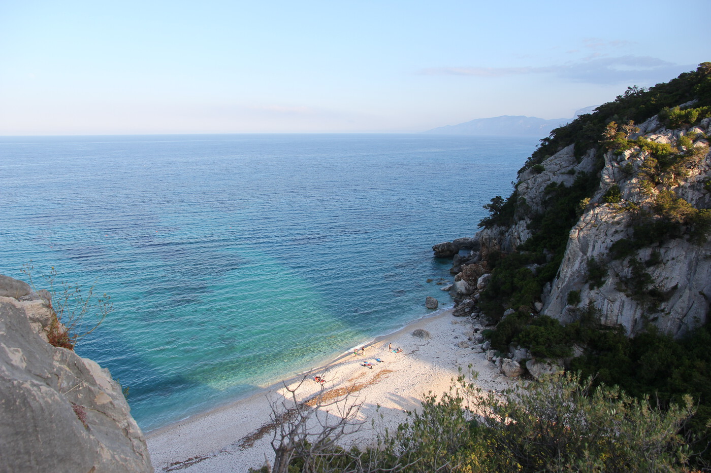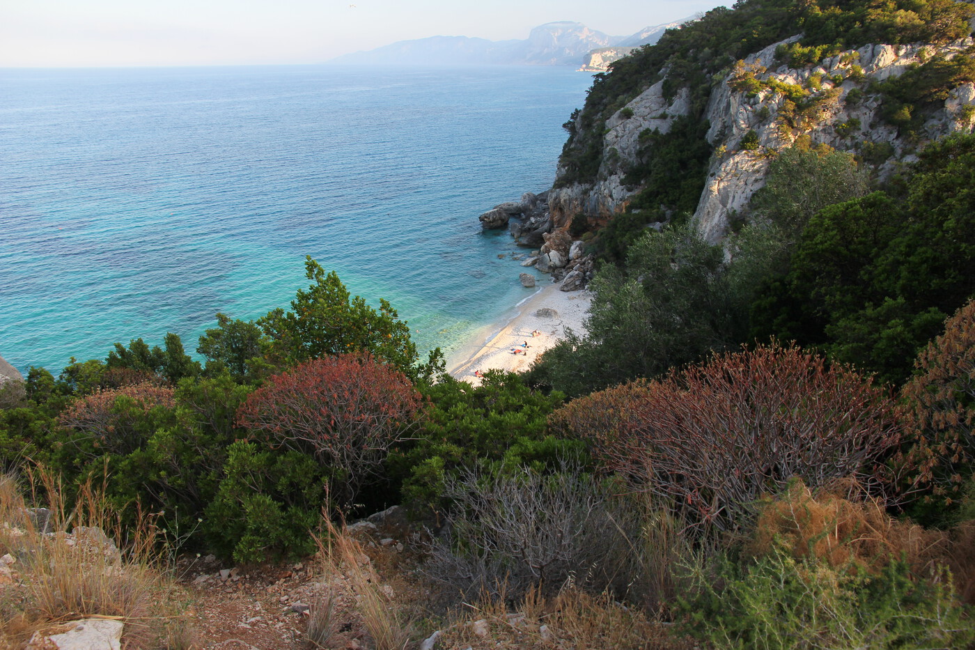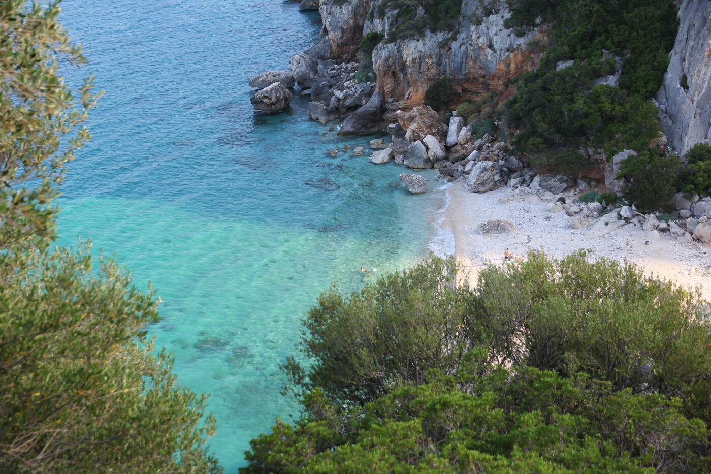 Mit dem Auto von Cala Gonone über die Küstenstraße erreichbar. Vom Parkplatz führt eine kurze Treppe hinunter zum Strand.