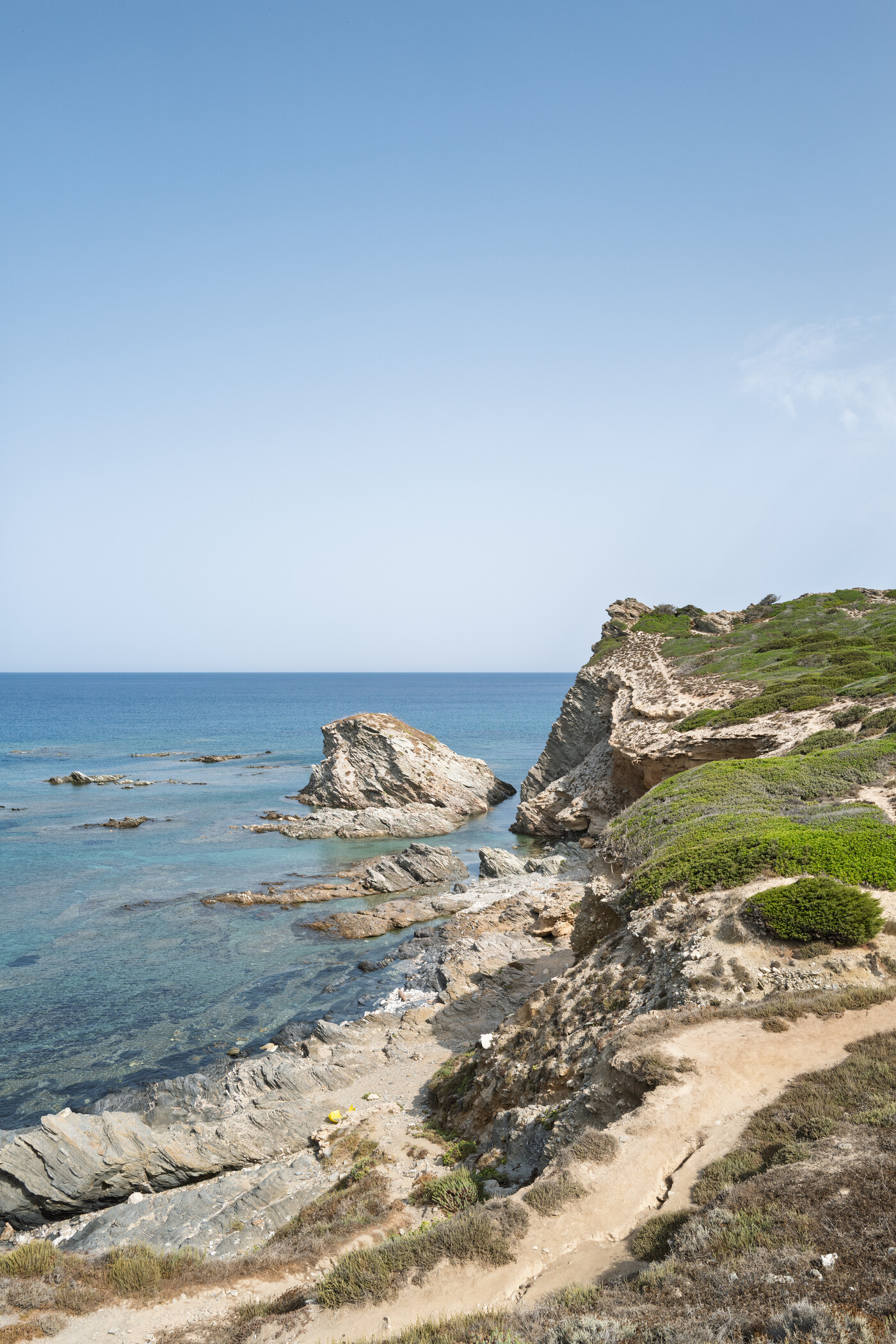 Kleine Bucht mit Sand, Kies und Felsplatten