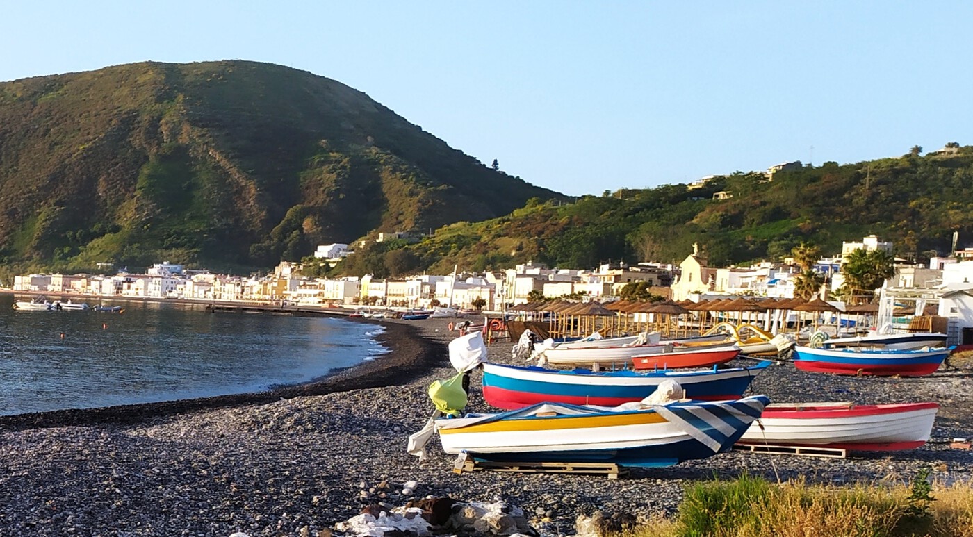 Von Lipari und Canneto aus erreichbar, mit Zufahrt in Küstennähe und einem kurzen Zugang zum Strandbereich.